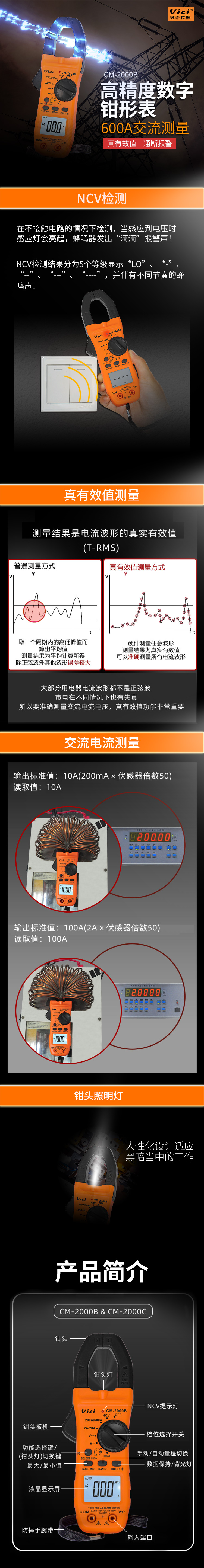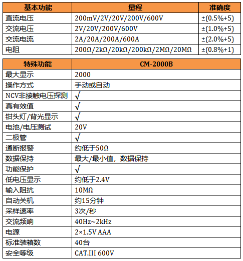 CM-2070C 2000碼顯示,鉗口張開52mm,真有效值測量,NCV功...