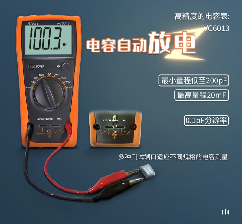 VC6013 高精度數字電容表,電容自動放電不燒表。
