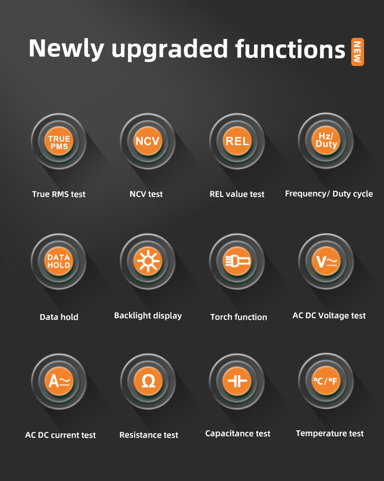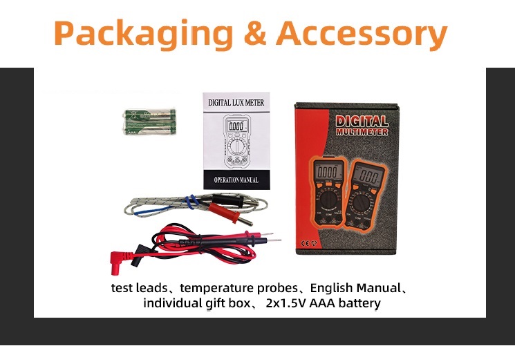VC835B multimeter, available to DC voltage, AC voltage, DC current, AC current, Resistance, Capacitance, Frequency, Non-contact voltage (NCV) detecting, Duty-cycle, Temperature, Diode and Continuity tests; Designed with unit symbol, Torch lighting, Data hold, Auto ranging switch, Auto power off and alarm functions.