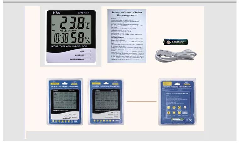 230B-CTH Room/Outer Digital Thermo Hygro Meter, Long Distance testing out room temperature tests, Clock/Date, Max/Min memory functions.