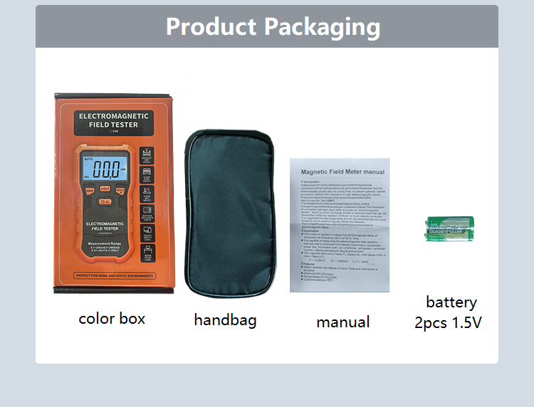 VC522 Household electromagnetic radiation measuring instrument EMF Meter, Data hold, Backlight and REL test functions.