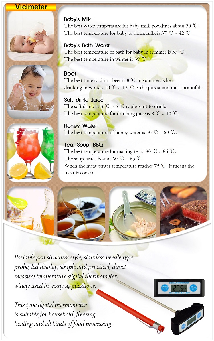 TM220 needle probe digital portable thermometer can accurately measure the temperature of food so that the most delicious food is cooked at a specific temperature. Measure various household water temperature, baby food, milk temperature, kitchen cooking, baking and other temperatures.