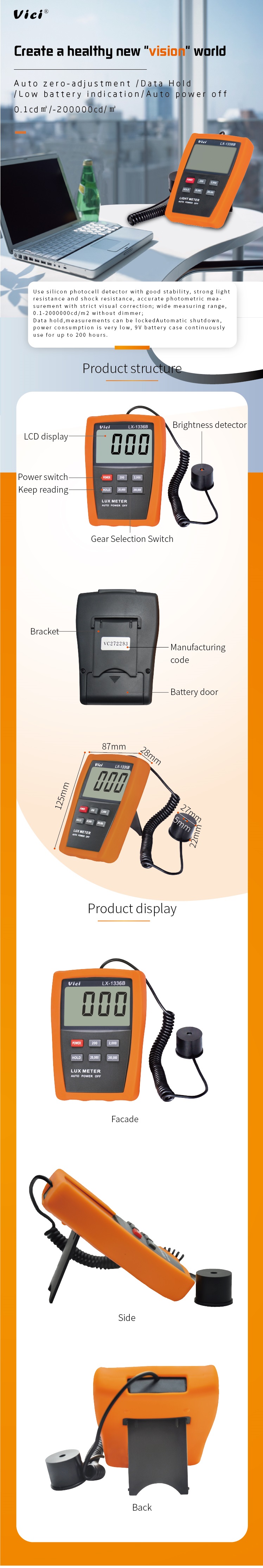 LX-1336B screen brightness meter is mainly used to test the luminous brightness of various backlights such as televisions, computers, and mobile phone screens. It can test whether the light intensity of each distribution point of the effective area of various backlights is uniform, test the brightness of televisions, computers, and mobile phone screens, prevent eye damage, and play a certain role in eye protection for students and children.