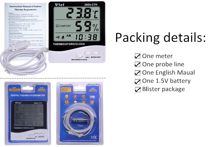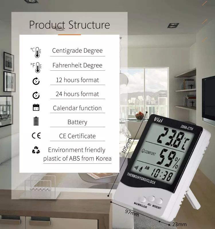 288A-CTH thermo-hygrometer (outside temperature and humidity sensor) can be placed or hung in living rooms, horizontal, offices, warehouses, specially designed for monitoring outdoor temperature and humidity in cold winters and monitoring temperature and humidity in refrigerated warehouses. Monitor the ambient temperature and humidity at any time to ensure a comfortable space and sleeping conditions, and ensure that the stored materials will not deteriorate.