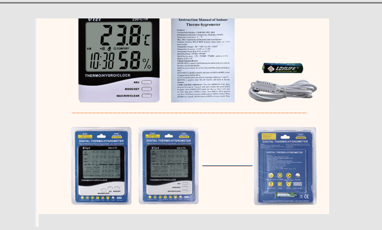 230A-CTH Digital Thermo Hygro Meter, Long Distance testing, Clock/Date functions, Max/Min memory functions.