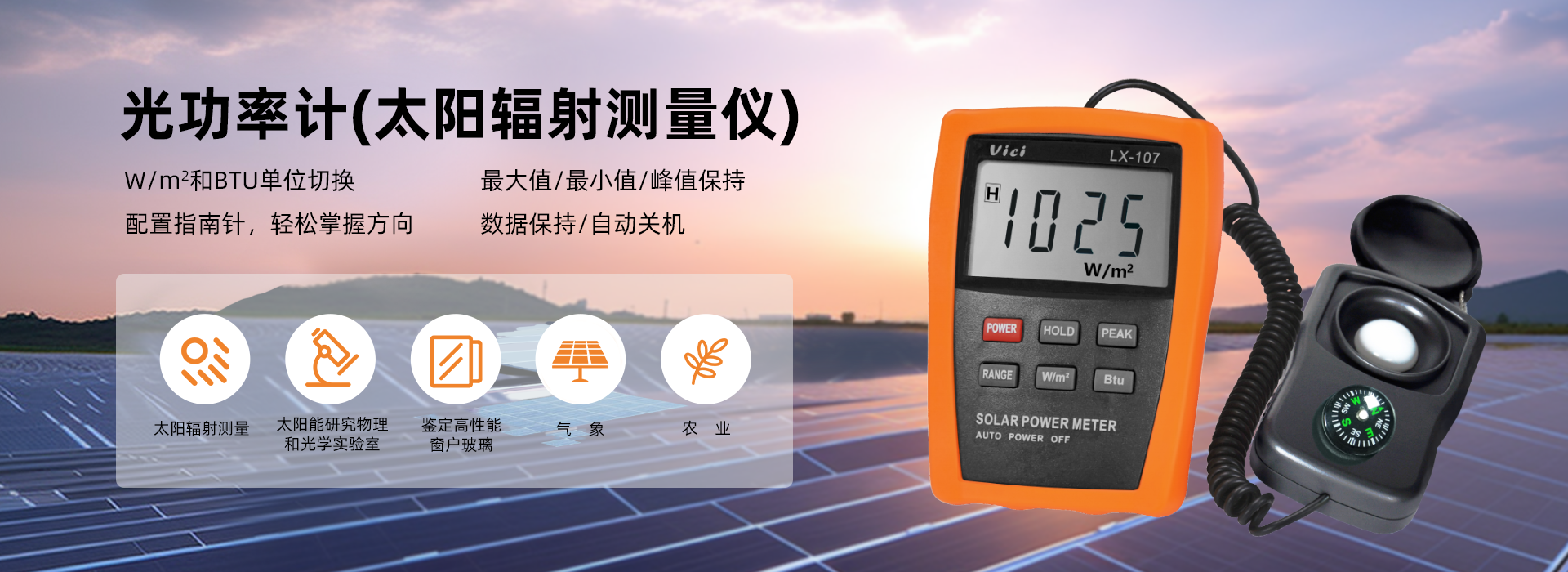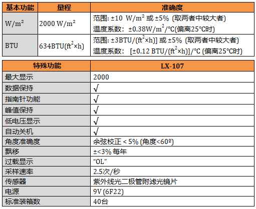 LX-107 太陽能輻射儀(光功率計),W/m2 和 BTU單位顯示,最大值,最小值,數據保持功能。
