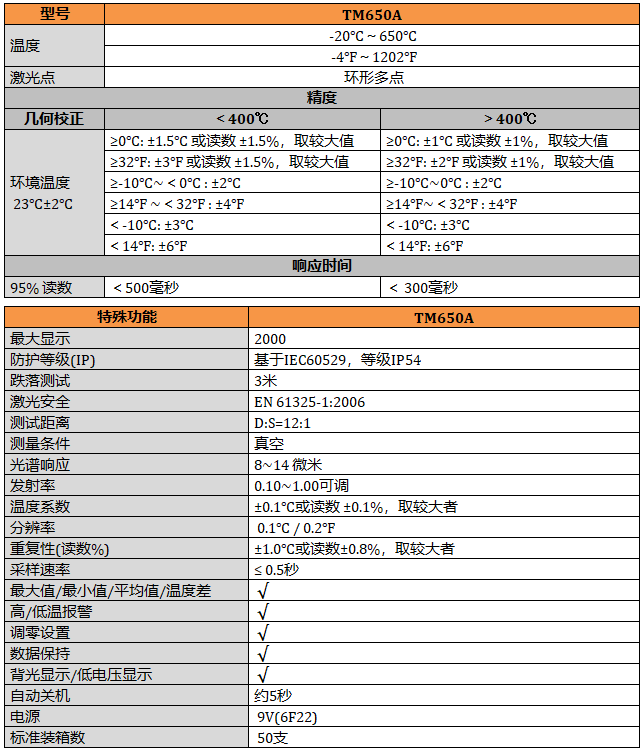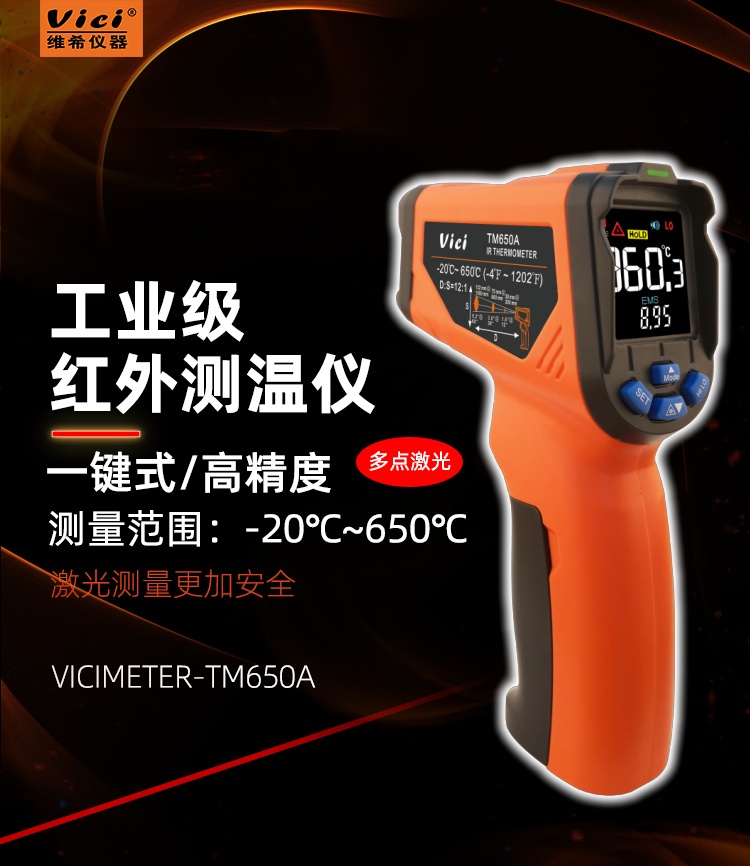 TM650A 650℃ 12:1紅外測溫儀,發射率0.1~1.0可調,高低溫報警功能,最大/最小/平均/差值。