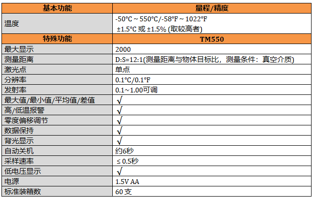 TM550 550℃紅外測溫儀,發射率0.1~1.0可調,閥值可設置,聲音報警功能,最大/最小/平均/差值。