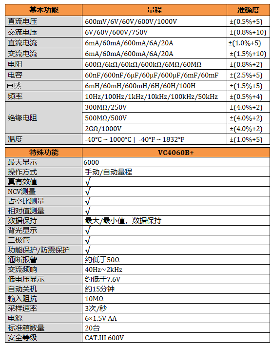 【跨境專供】VC4060B+ 馬達檢測,絕緣電阻,電感測試萬用表 真有效值測量, NCV測量,讀數保持,背光顯示,最大值/最小值及最大值和最小值之間的差值