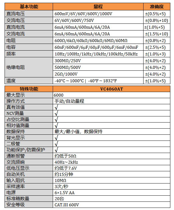 【跨境專供】VC4060AT 馬達檢測,絕緣電阻測試儀 真有效值測量, NCV測量,讀數保持,背光顯示,最大值/最小值及最大值和最小值之間的差值