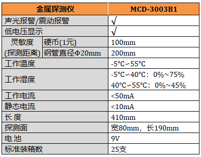 MCD-3003B1 金屬探測儀,高靈敏度可調,聲光報警,震動報警。