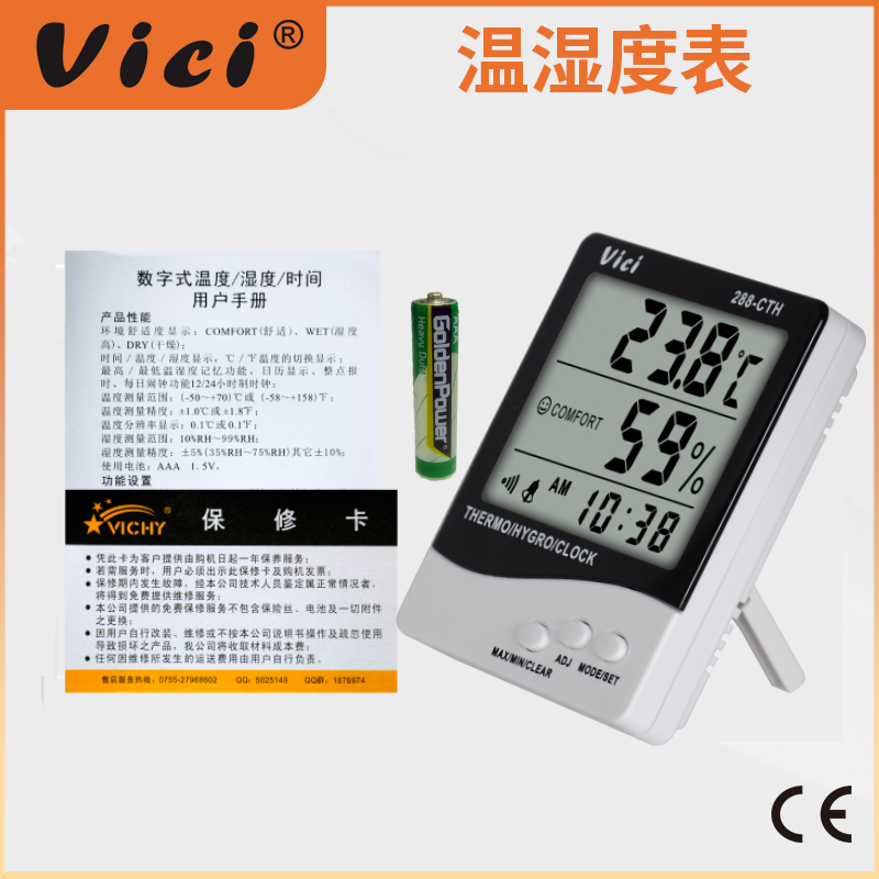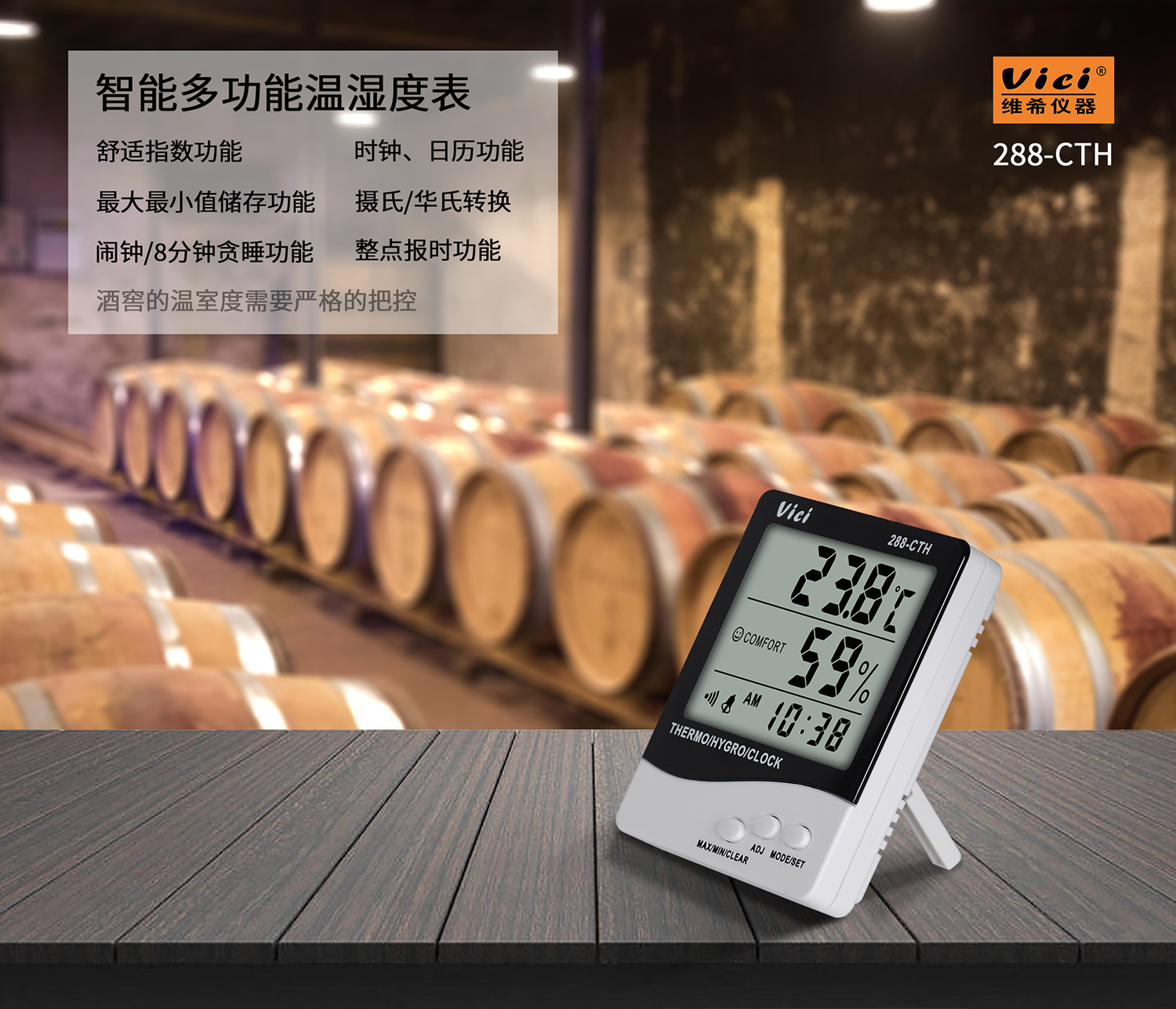 288-CTH 數(shù)字溫濕度表,時(shí)鐘、日期功能,最大值、最小值溫濕度儲(chǔ)存功能。