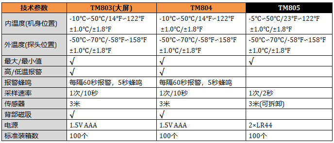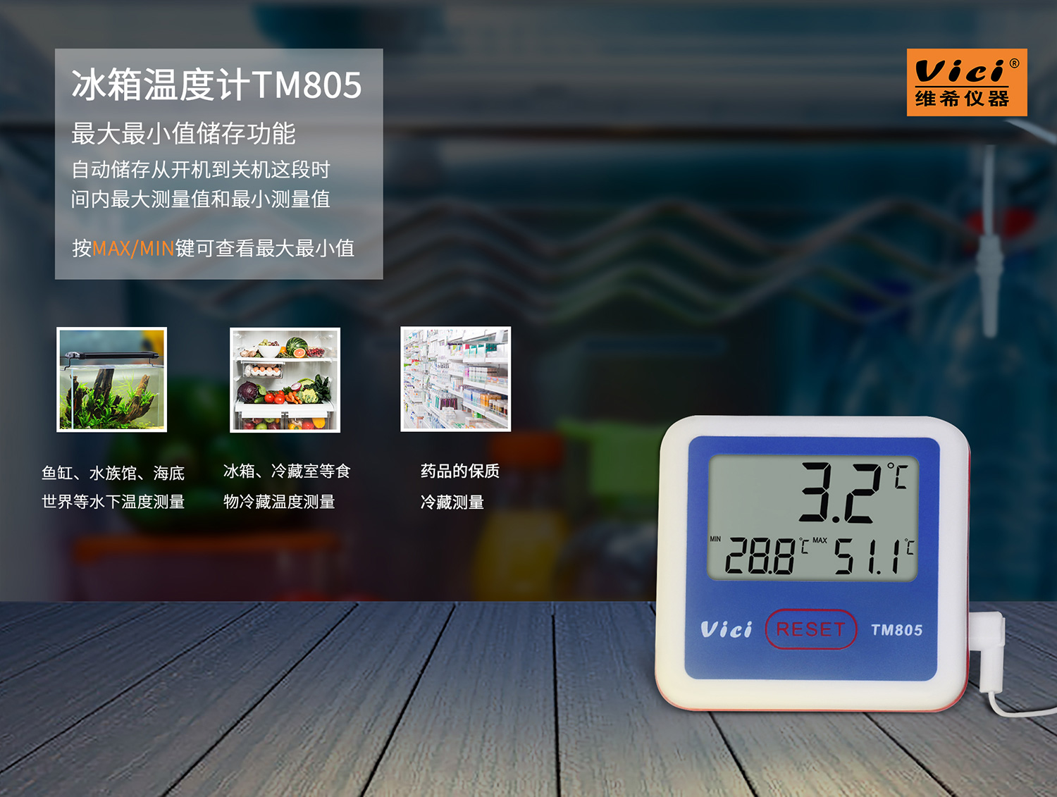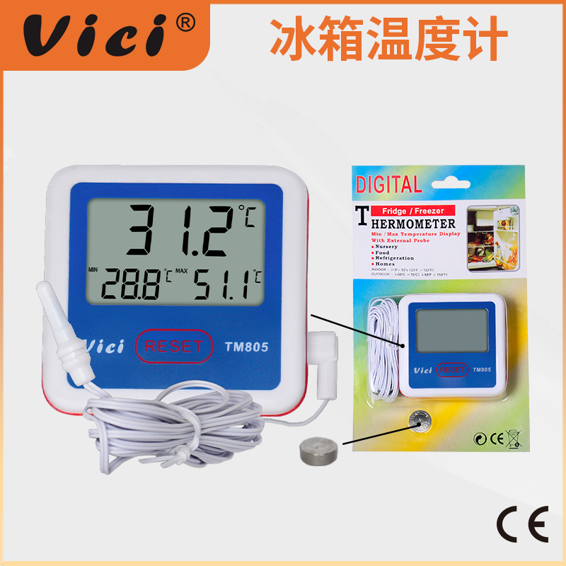 TM805 冰箱溫度計,可拆卸外置傳感器,最大值、最小值測量,攝氏和華氏溫度。