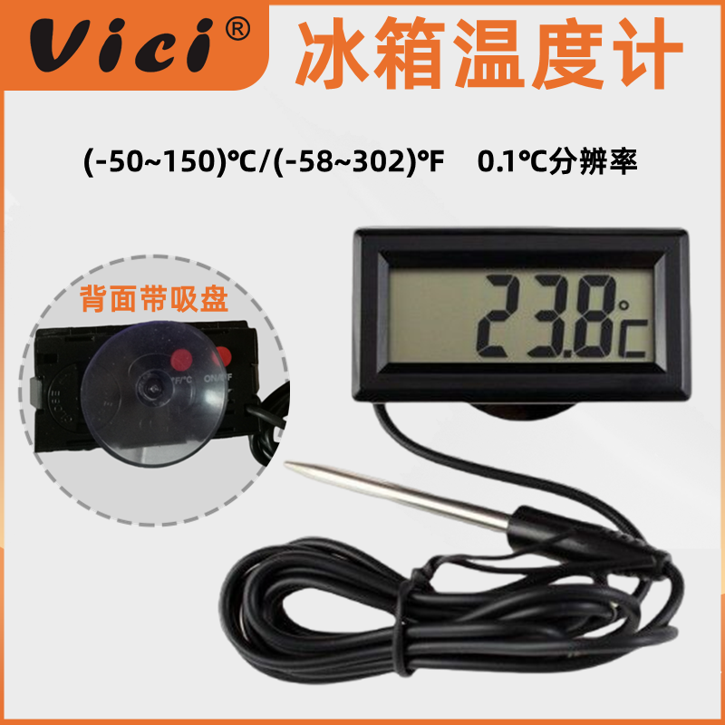 華氏/攝氏按鍵;測量范圍:(-50~150)℃/(-58~302)℉;分辨率:0.1℃;探針式測溫,線長1m;背部附透明吸盤。