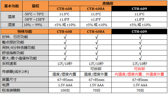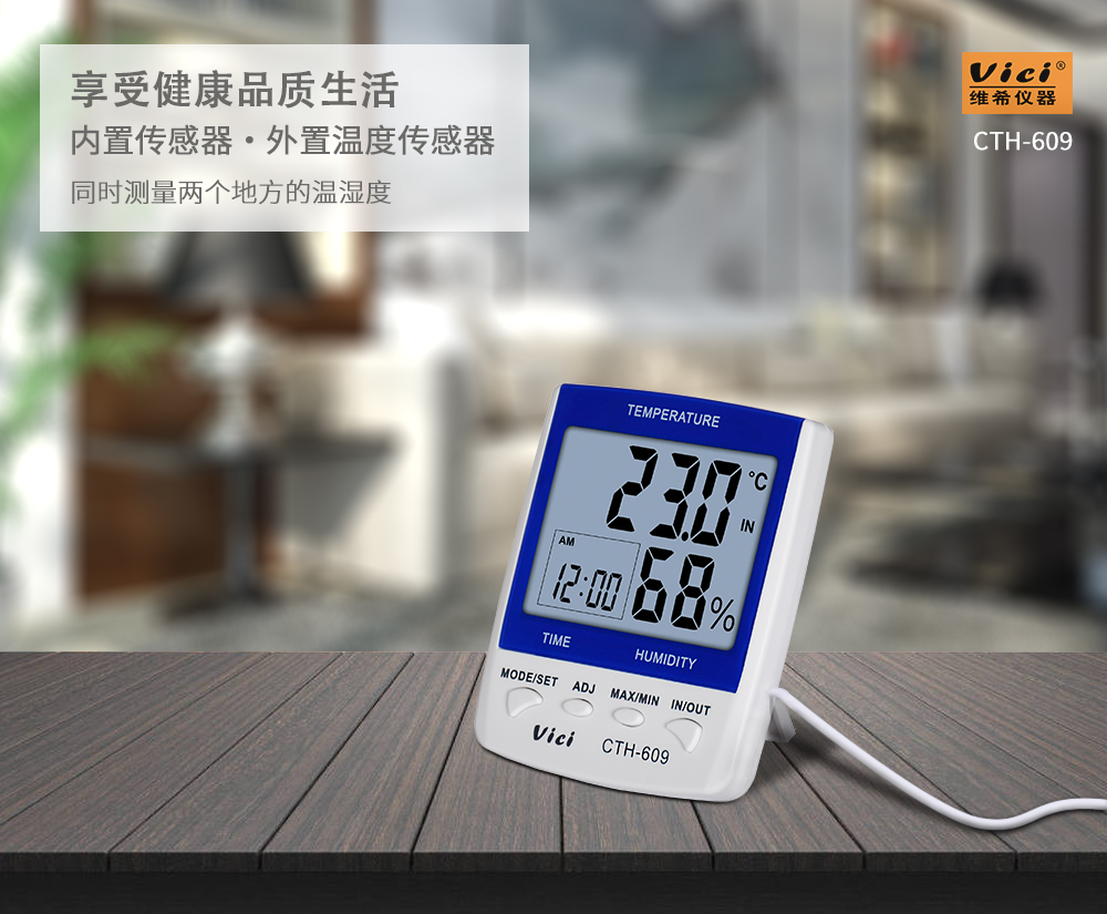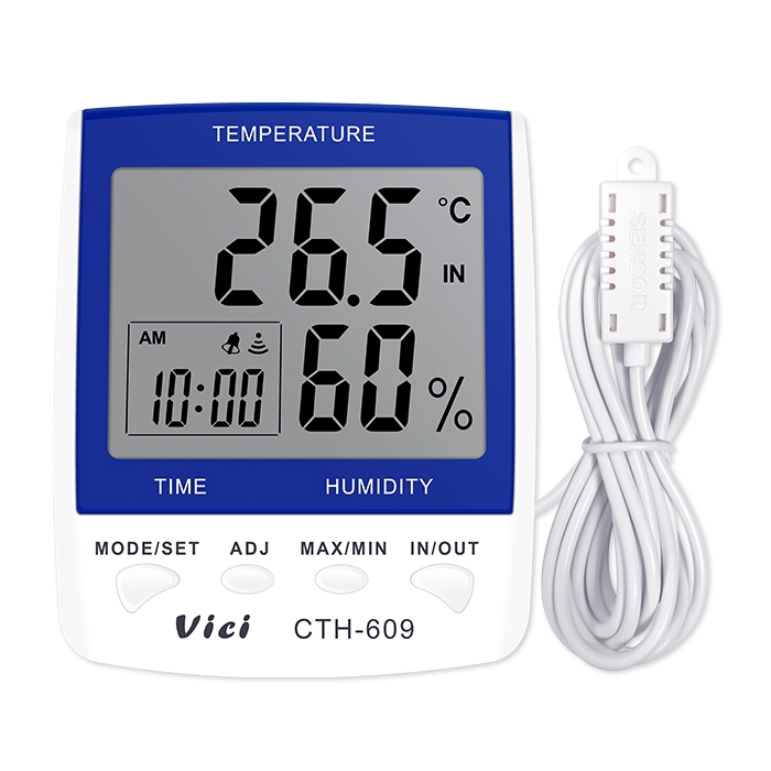 CTH-609 室內外數字溫濕度表,遠距離測量室外的溫度,時鐘、日期功能,最大值、最小值溫濕度儲存功能。