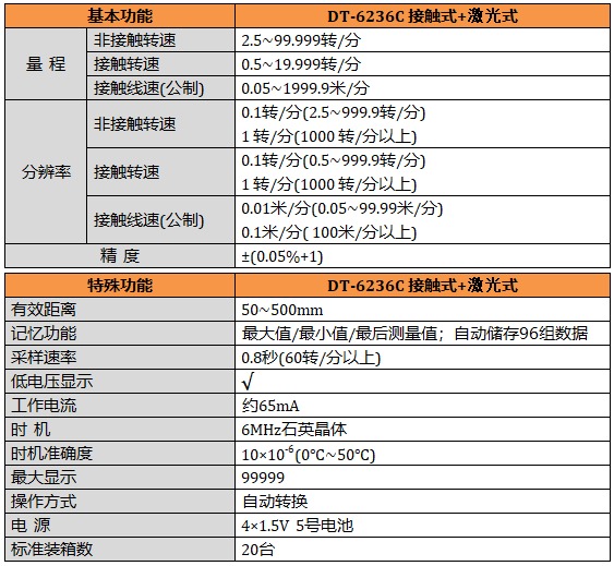 DT-6236C 激光光電接觸轉速線速表,自動記憶最大值,最小值,最后測量值,自動存貯數據。