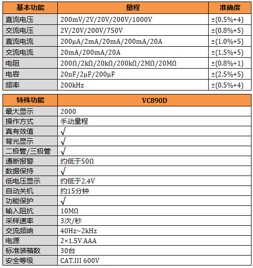 VC890D 真有效值,背光顯示,二極管三極管,通斷報警,數(shù)據(jù)保持,手動量程[維希儀器]