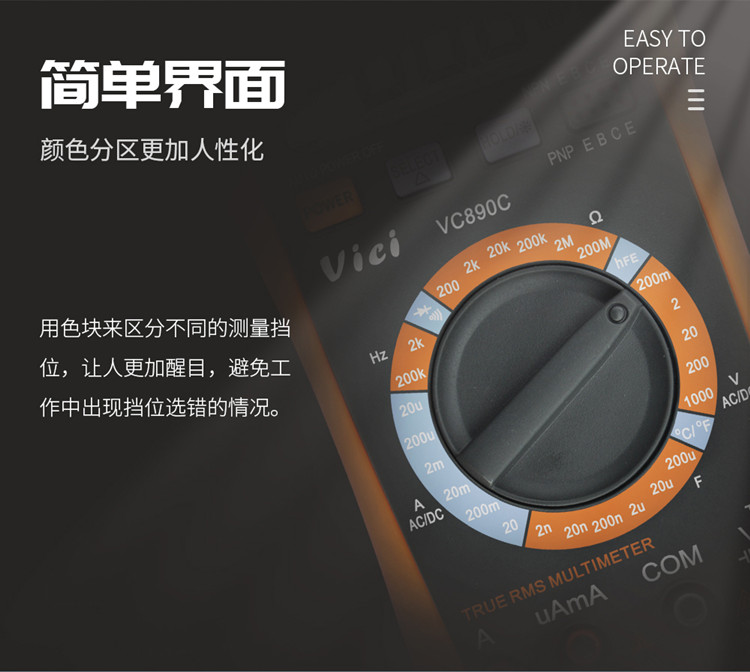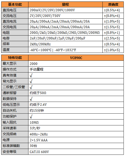 VC890C 真有效值,背光顯示,二極管三極管,通斷報警,數據保持,手動量程[維希儀器]