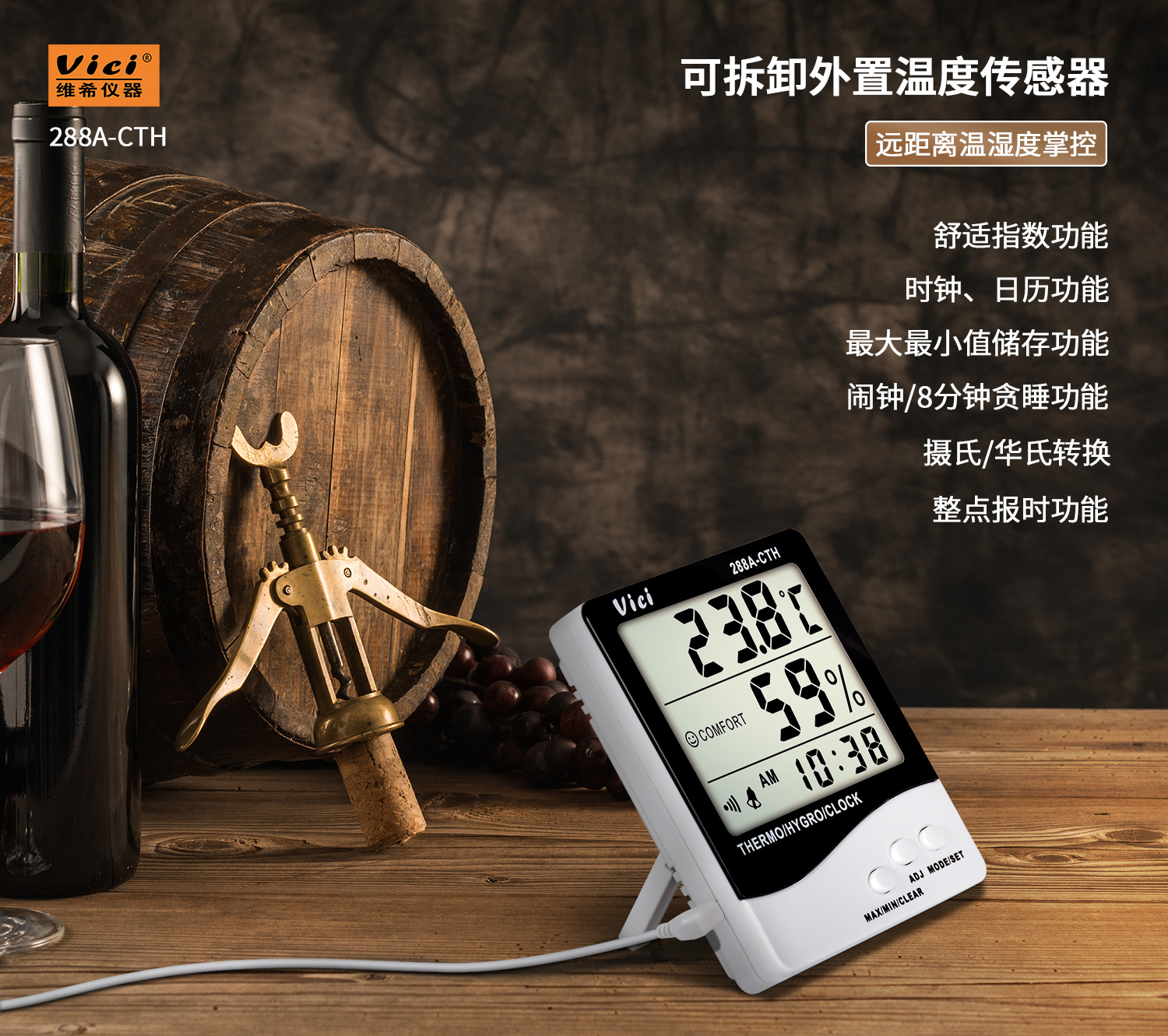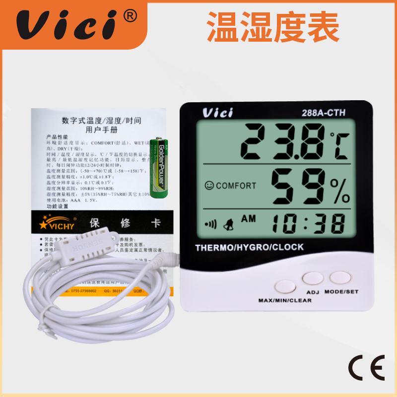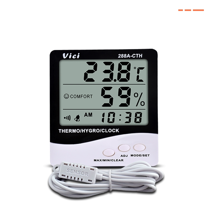 288A-CTH 數字溫濕度表,遠距離測量,時鐘、日期功能,最大值、最小值溫濕度儲存功能。